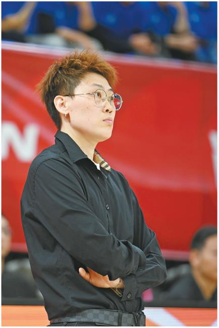 陕西榆林天泽女篮主教练纪妍妍在比赛现场(4月1日摄)。